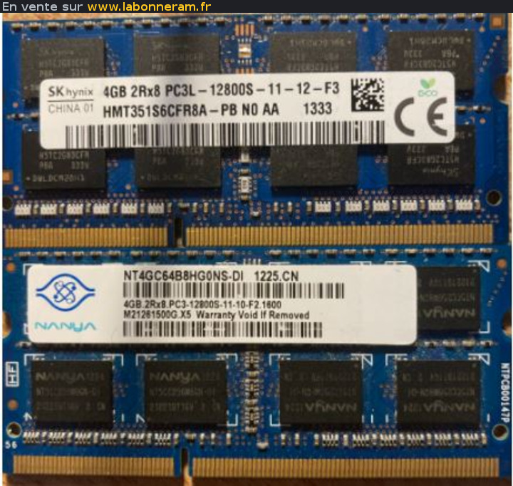 Je vends deux barrettes de 4GB chacune pour ordinateur portable