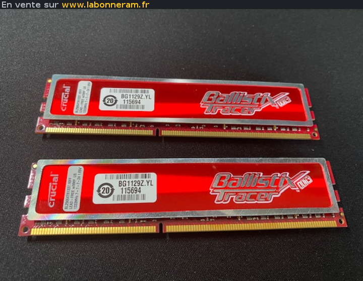 Cause erreur de commande je vend mes deux barrettes de RAM de 2Go Crucial Ballistix Tracer DDR3 à 1333 MHz