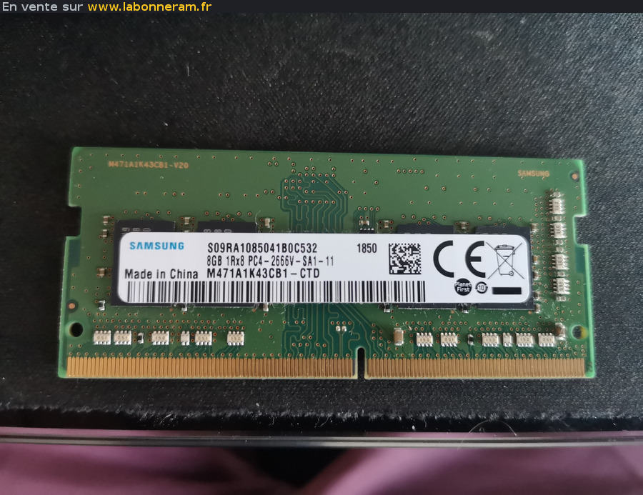 Je vends une barrette de RAM 8GB Samsung en très bonne état, suite à l'upgrade de mon PC.