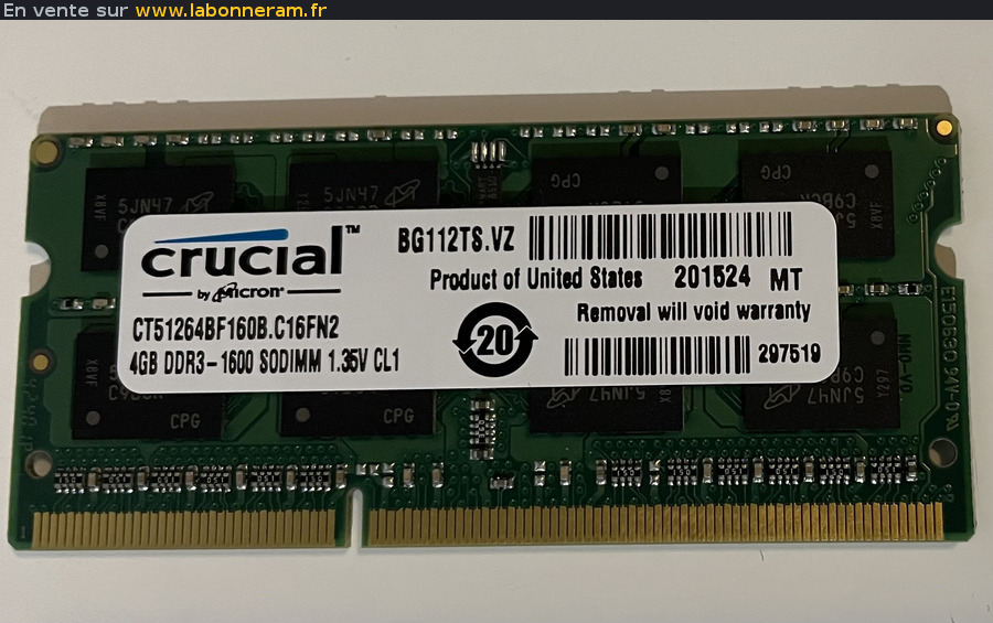bonjour je vends ma barette de mémoire crucial 4GB DDR3 - 1600 SODIMM
