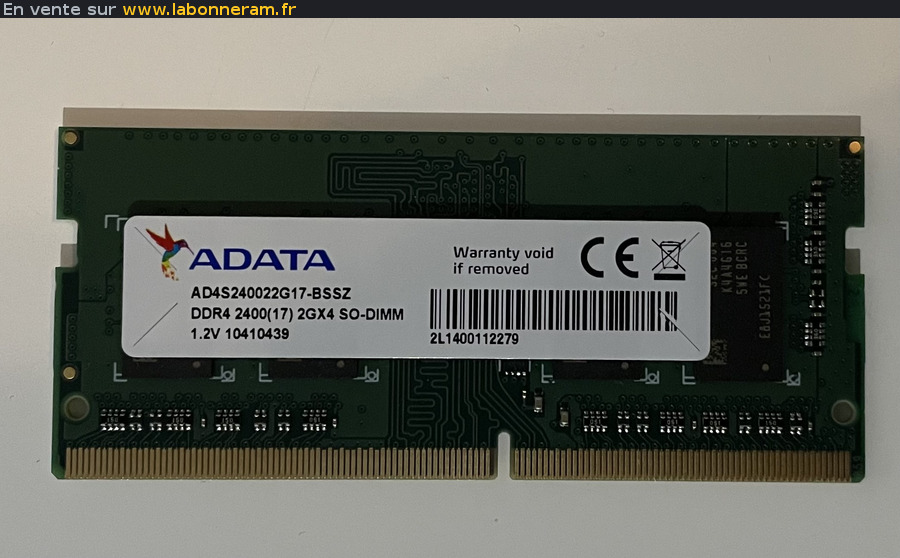 Je vends ma barette de mémoire neuf ADATA 2GB DDR4 2400.