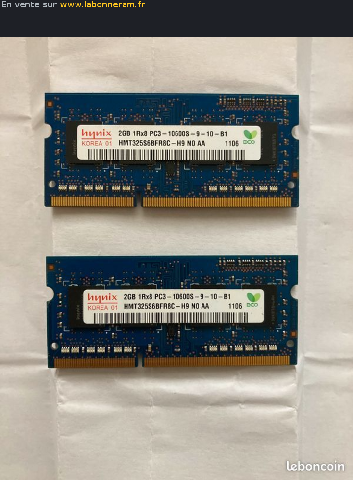 2 barrettes de mémoire 2go 1333 Mhz.