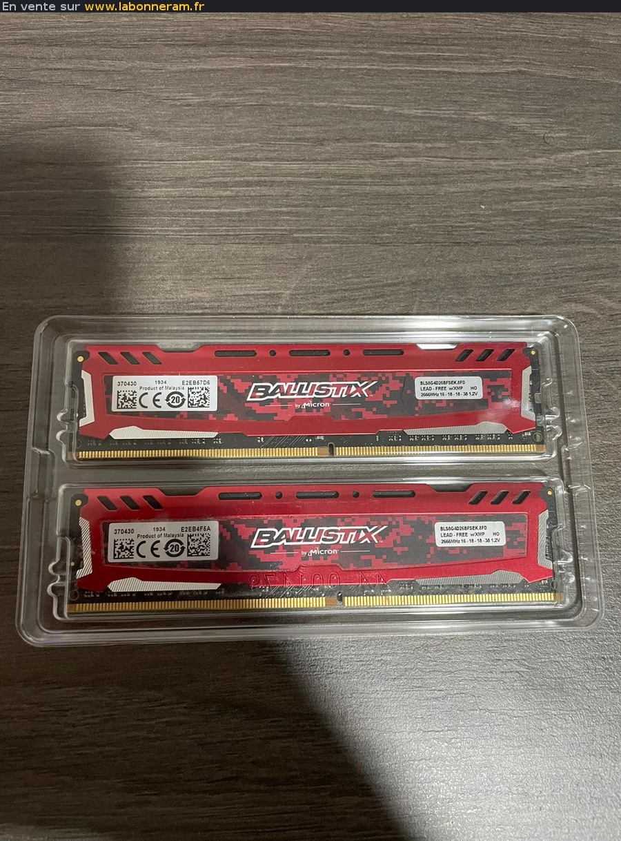 mes barrette de RAM de la marque BALLISTIX achetée en 2019.