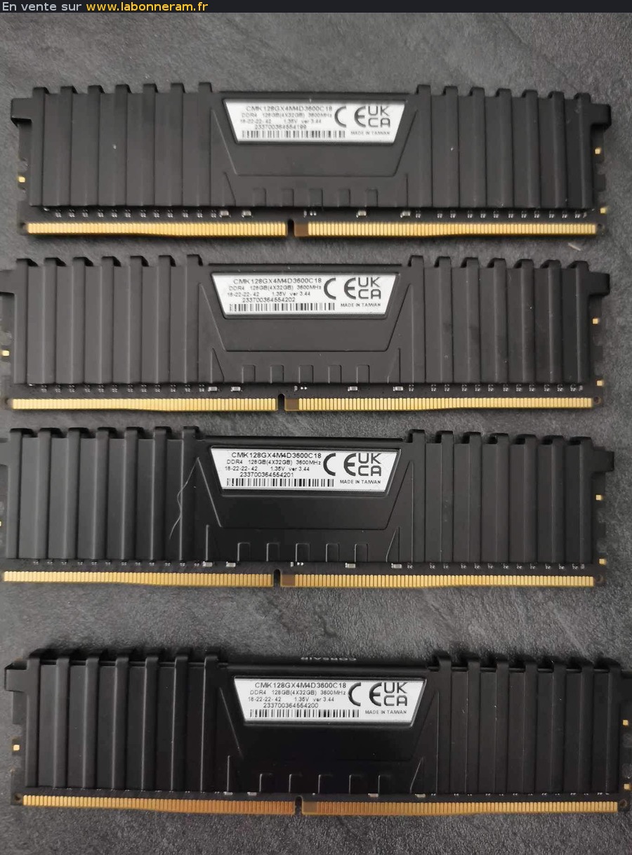 Je met en vente mes barrette de ram de la marque Corsair de 128go en 3600 MHz en 4 x 32 go DDR4.