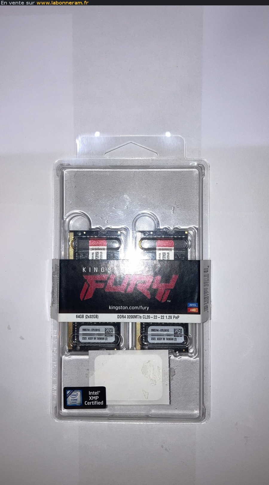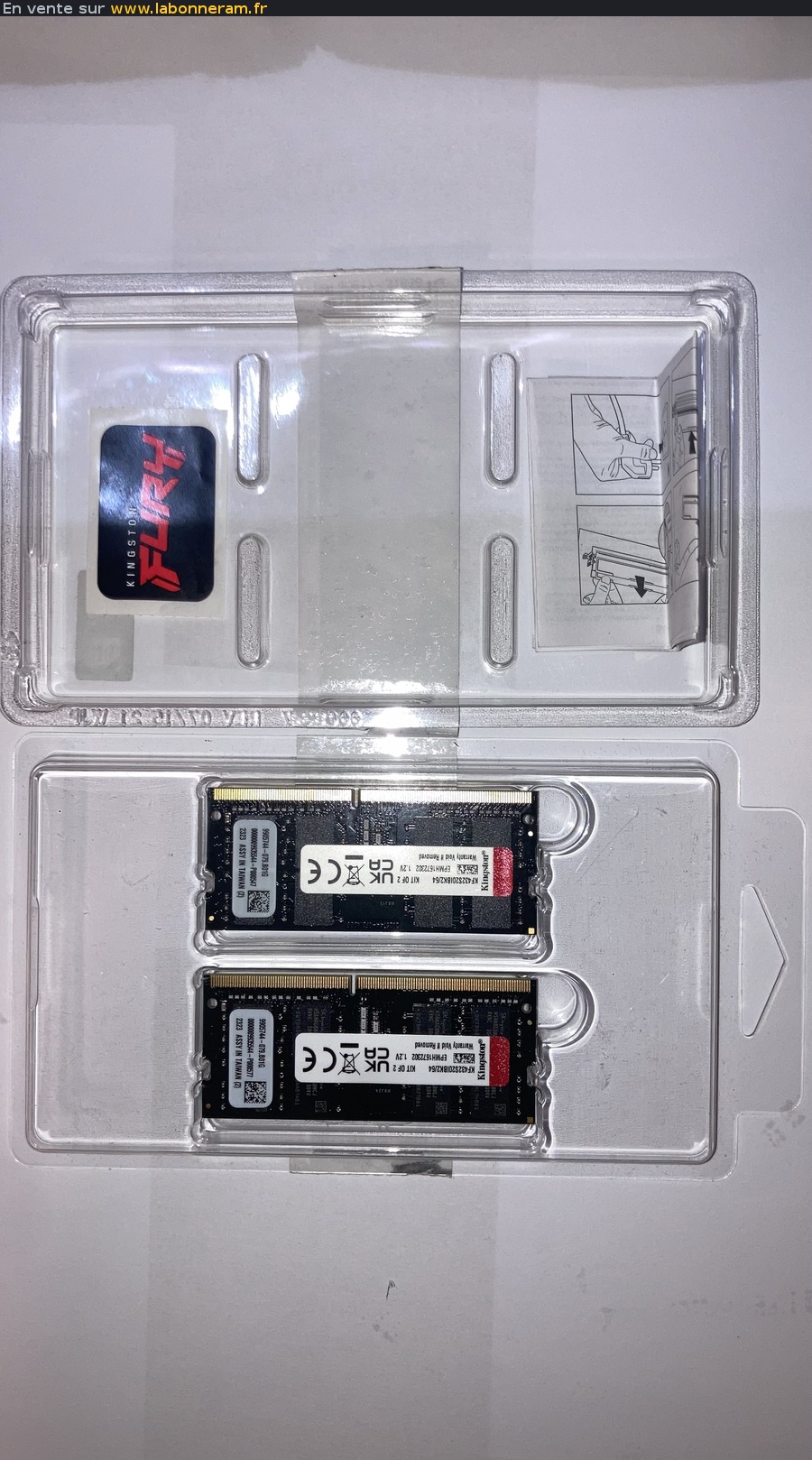Bonjour, mes barrettes de ram pour pc portable Kingston FURY Impact 64 Go en DDR4, cadencé à 3200 MHz, elle est *quasiment neuve*, il lui reste encore 1 an de garantie et suite à mon ordi qui es tombé en panne au prix de 140€. (Négociable) / (Livraisons possible)