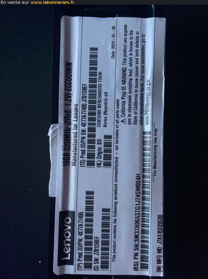 RAM LENOVO 16GB 3200MHz 2Rx8 1.2V ECCUDIMM 4X77A77495