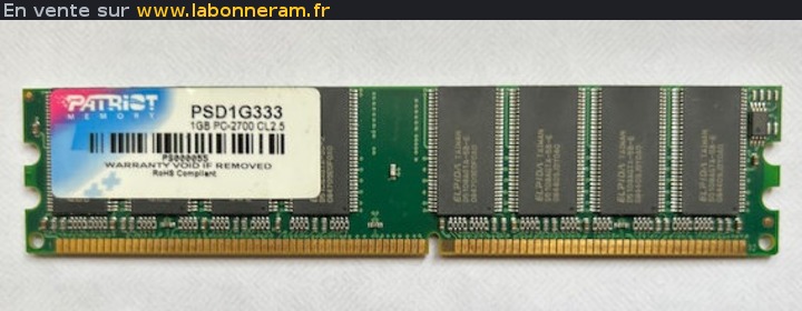 LIEN : https://www.labonneram.fr/ram-613-memoire-pc-tour-patriot-1gb-pc-2700-cl2-5