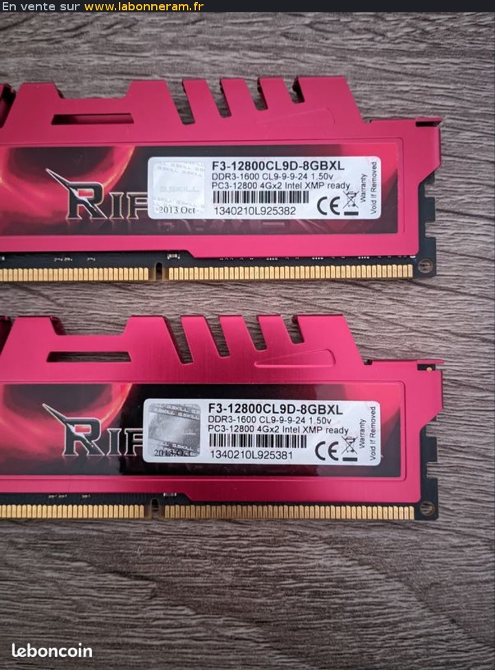 Vend 2 barrettes de ram de 4 GO, le lot 15 euros