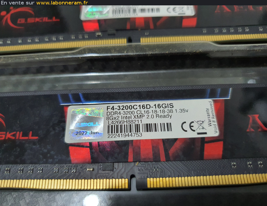 A vendre 2 barrettes de 8G en DDR4 3200 sur Bordeaux uniquement