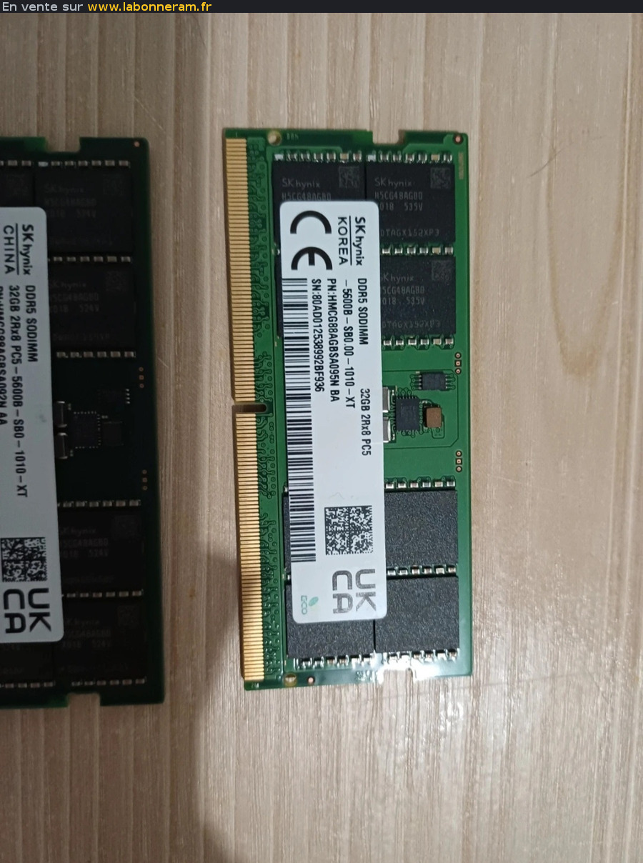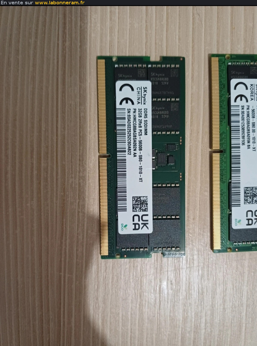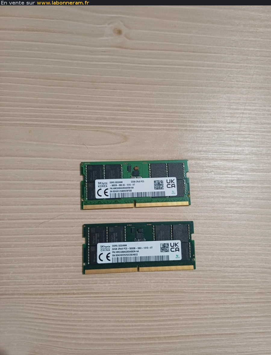 2 barrettes de RAM SK Hynix 32Go DDR5 - PC5-5600B